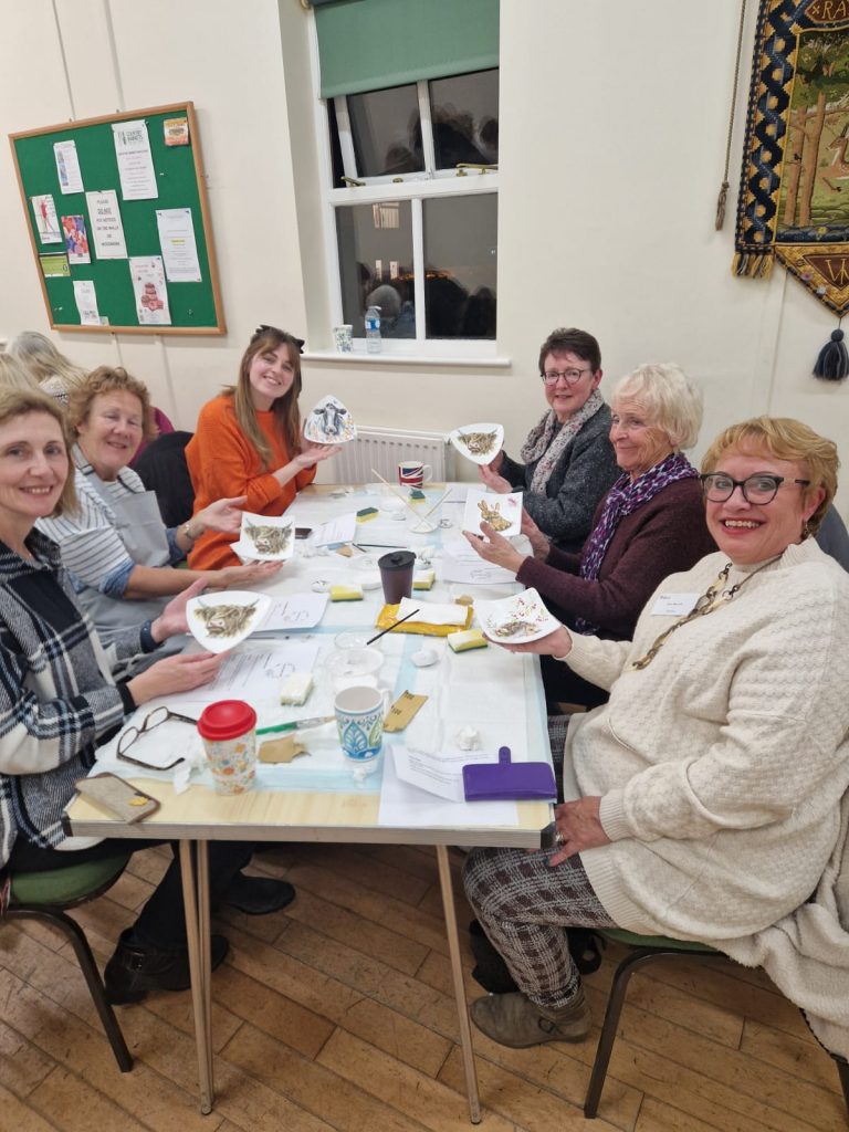 Our November meeting was a fun evening involving lots of paint and glue as we hosted a decoupage workshop for our members. We learned how to prep and paint our objects to be decorated before considering image placement for maximum effect, using decorative paper napkins to create our designs. There was lots of wafting our copies of Essex WI News as we encouraged the paint and glue to dry!